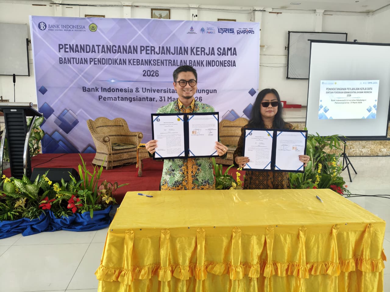 Sebelum kuliah umum dilaksanakan, Rektor Universitas Simalungun dan Kepala Bank Indonesia perwakilan Pematangsiantar melakukan penandatangan Perjanjian Kerjasama tentang Bantuan Pendidikan Kebanksentralan Bank Indonesia Tahun 2026.